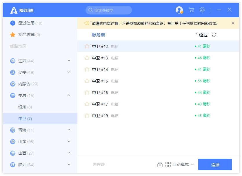 中卫市位于宁夏中西部,是宁夏回族自治区、内蒙古自治区和甘肃省交界地带。如果想要获得中卫 IP,只有身处中卫地区或者使用代理工具来实现,爱加速这类代理工具也是很多异地用户用的比较多的方法。