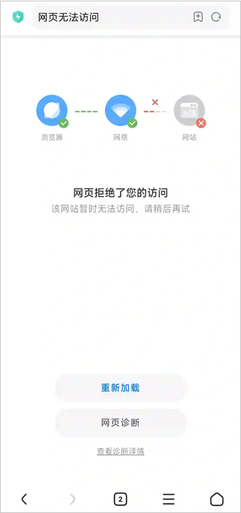 【解决方法】可以尝试在手机浏览器中切换“桌面版/电脑版模式”,如果桌面版/电脑版能打开该网站,说明问题确实出在移动端适配层面。
