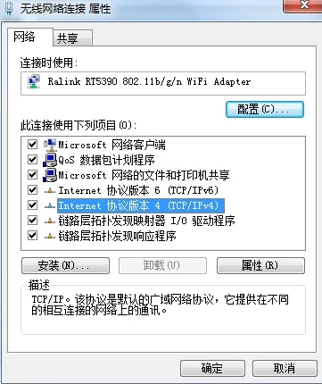 4. 在网络选项卡的此连接使用下列项目列表框中双击打开“Internet 协议版本 4(TCP/IPv4)”项目
