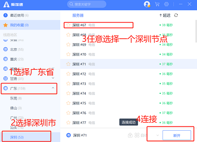 大家在学习工作,尤其是在家办公的时候,有时候会需要用到深圳IP地址,但是不知道该怎么操作,其实只需要下载爱加速,注册登录账号以后,再连接深圳的IP节点,就可以把IP地址顺利切换到深圳了。